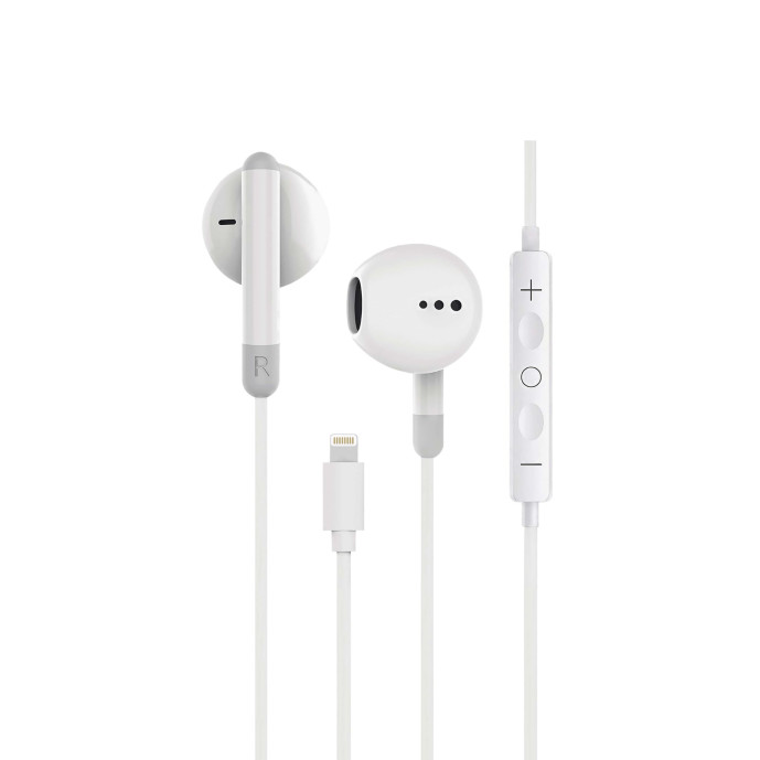Auriculares con cable Contact, Lightning, Compatibles con iPhone 14 y anteriores, Llamadas, Botón multifunción, Blanco