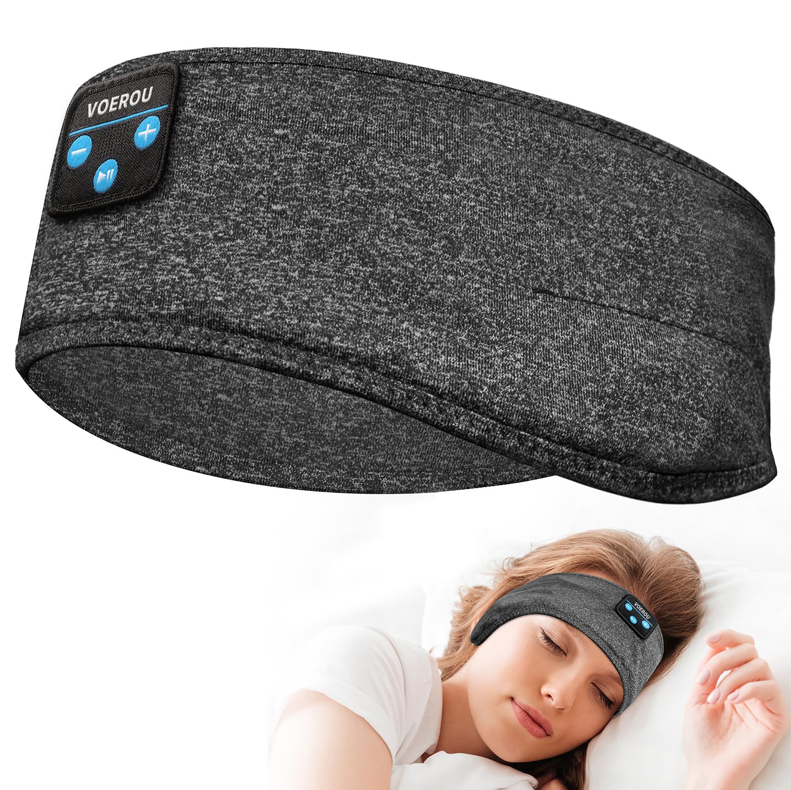 Voerou Diadema Deportiva Para Dormir con Auriculares Ultrafinos Inalambricos Bluetooth con Altavoz para Personas Que Duermen De Lado, Musica, Correr, …